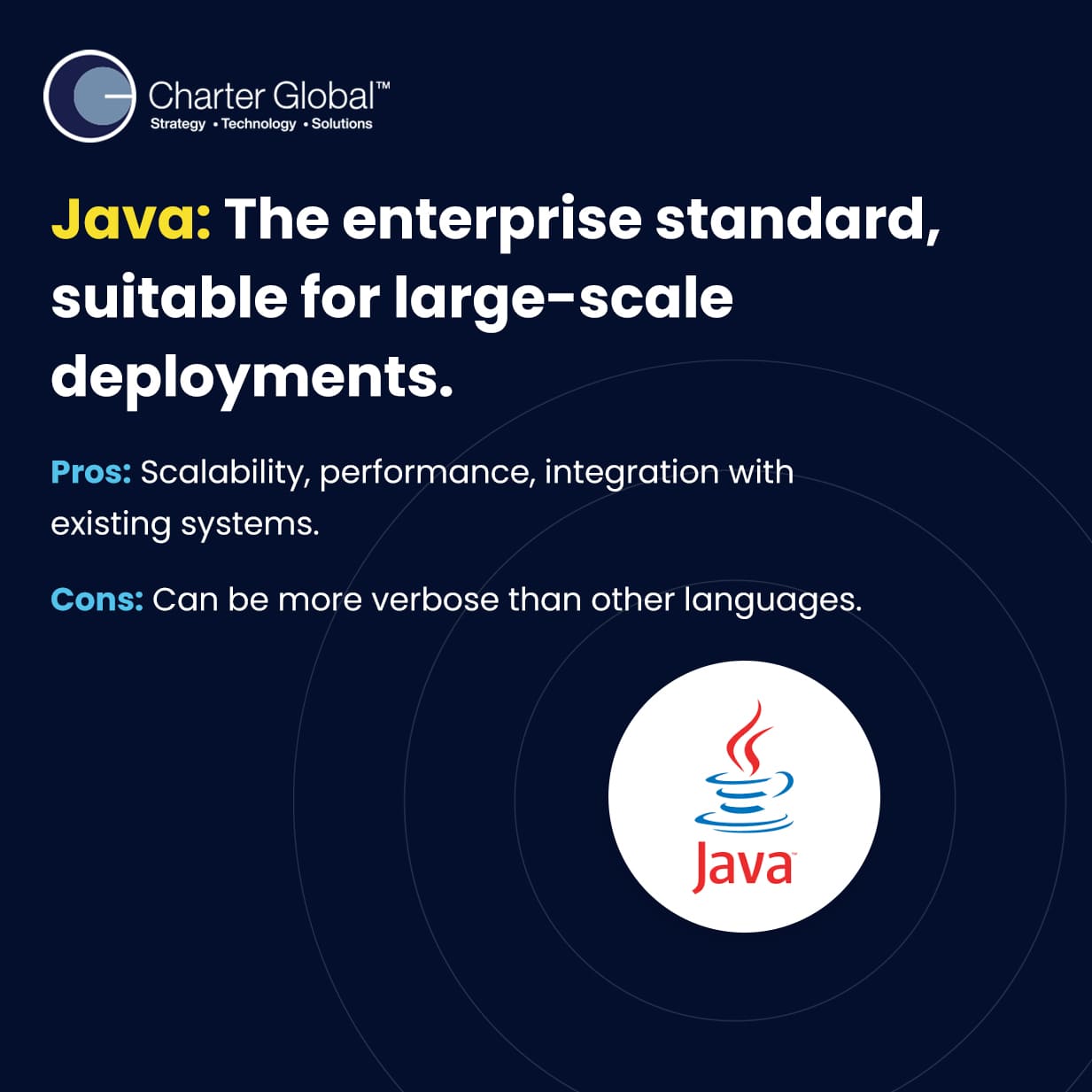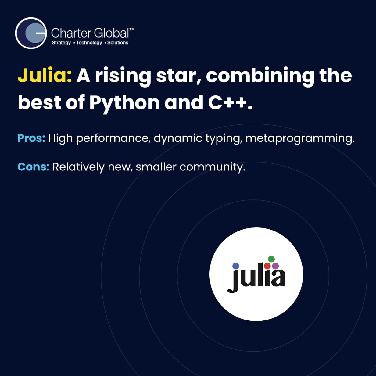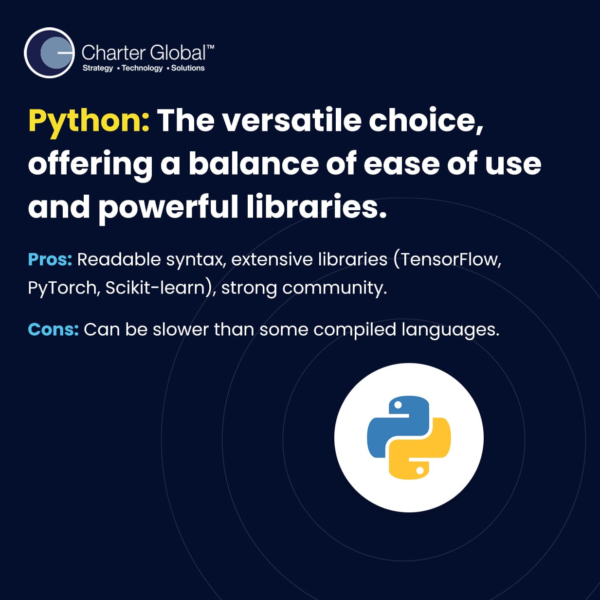 At Charter Global, our team of experienced data scientists and engineers can help you select the right programming language for your machine learning project. We offer a range of services, including: