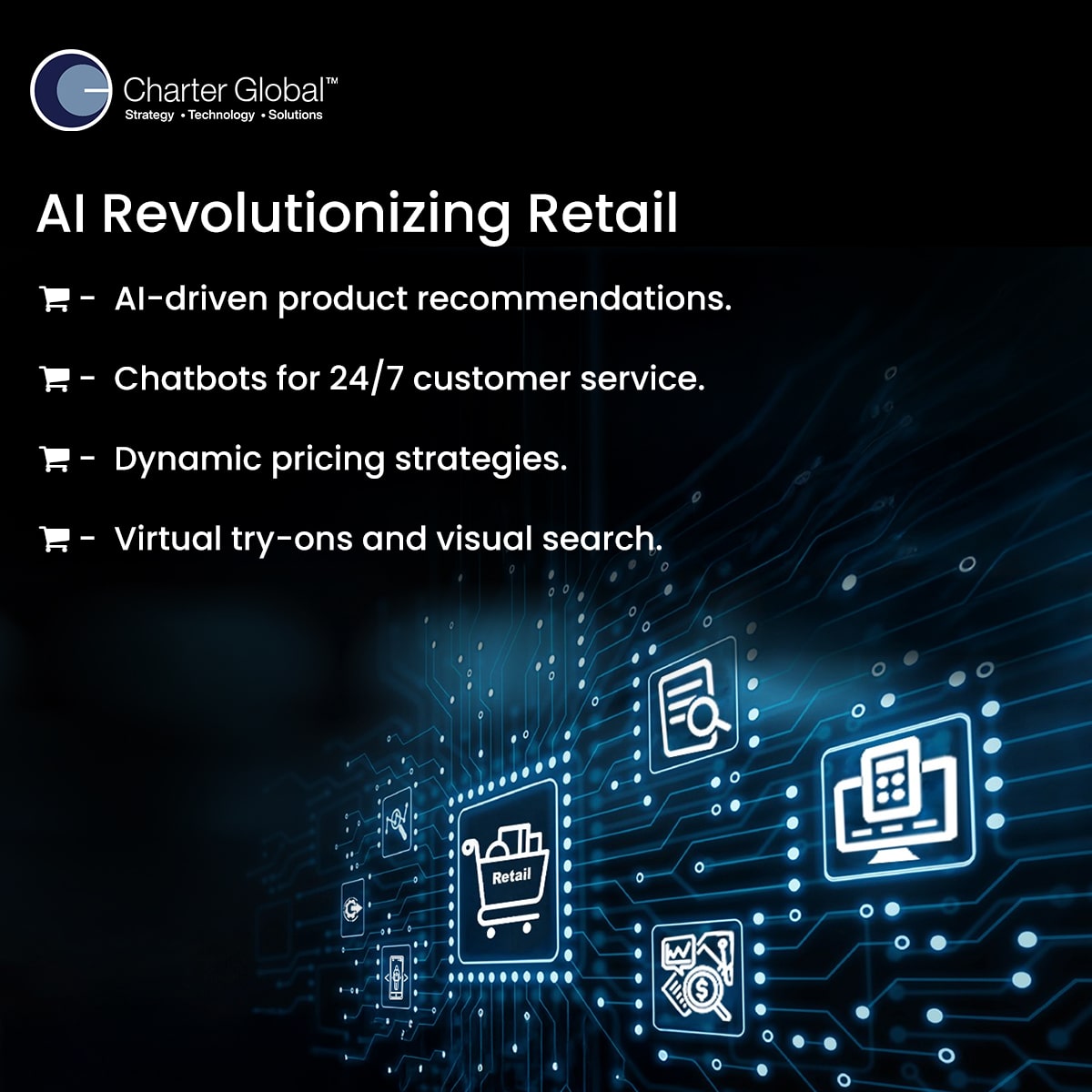 At Charter Global, we specialize in delivering innovative technology solutions tailored to the retail sector. From implementing AI-driven analytics to designing IoT-enabled smart stores, our expertise helps retailers discover their full potential.