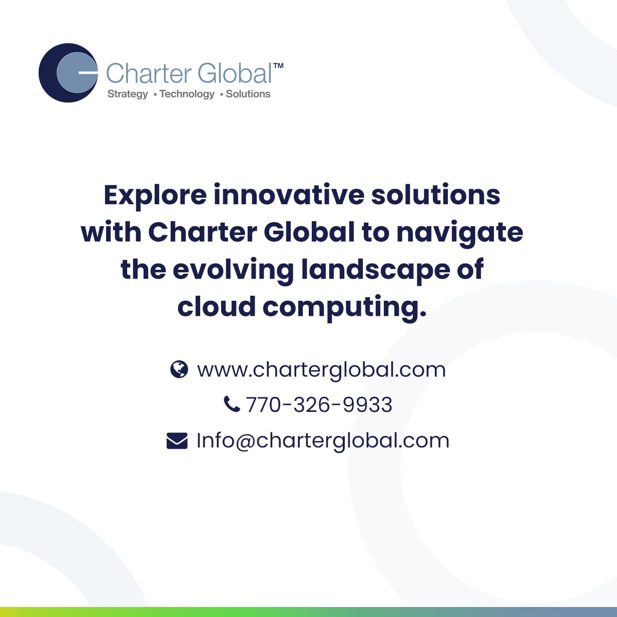 Embrace the future of technology with Charter Global. For inquiries and consultations, visit www.charterglobal.com or call us at +1- 770.326.9933 or email us at sales@charterglobal.com.